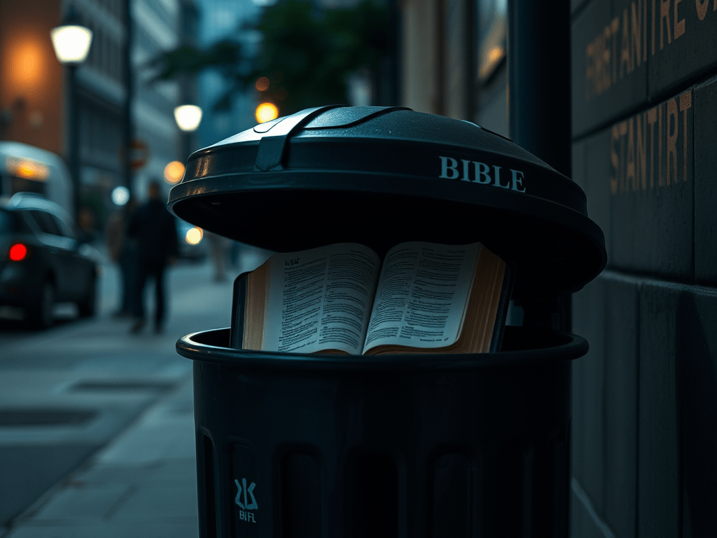 In the tract, you read about God’s Word. You read the first few lines and put it in the bin.
